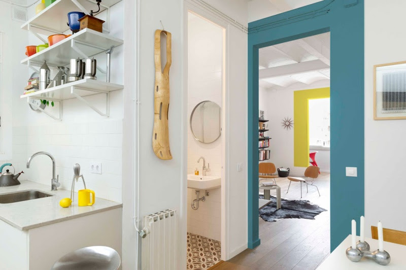 La casa di queste immagini si trova in un edificio storico a Barcellona ed è di 70 mq, una metratura abbastanza comune per una giovane coppia. I proprietari sono una giovane famiglia con un bimbo piccolo. Lui è designer, lei insegnante di lingue ed hanno gusti non propriamente convenzionali. Hanno chiesto allo studio Egue y Seta di occuparsi della ristrutturazione, a seguito della quale la casa ha assunto un aspetto totalmente nuovo, più moderno e vivace, in linea con i gusti dei due giovani abitanti, che hanno saputo creare una delicata alchimia tra invenzione e tradizione.